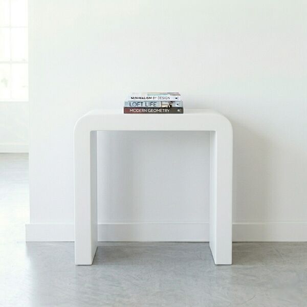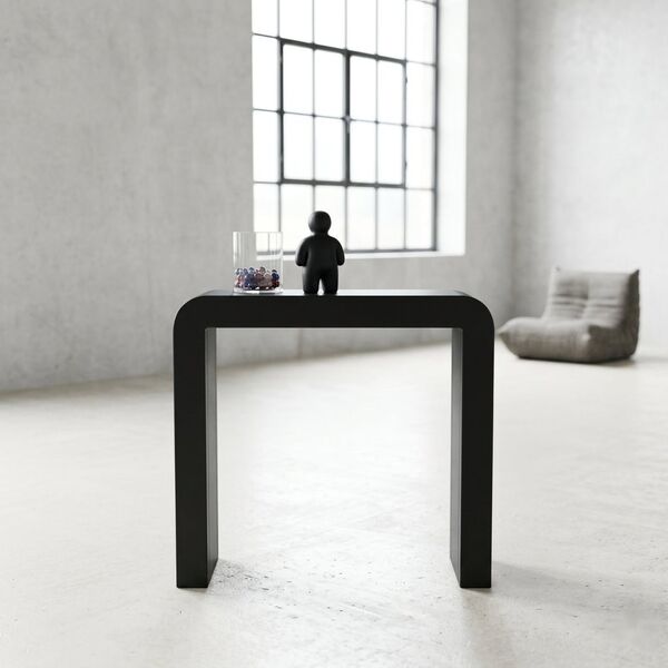 En entrée, ses courbes accueillent sans rigidité — elle donne un ton dès le seuil, sans forcer. Dans un couloir de loft aux murs bruts, elle crée un dialogue entre la dureté du béton et la fluidité de ses lignes.