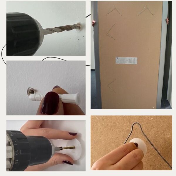 Découvrez dans les images comment installer facilement votre miroir xxl sur votre mur avec les chevilles et fixations fournies.