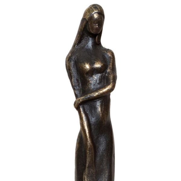 Cette figurine d’art présente la femme comme le pilier, le cadeau de la nature, qui, comme le métal fondu transformé en bronze, endure et se sublime.